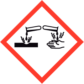 Producten die corrosief en bijtend zijn. Deze producten kunnen de huid en slijmvliezen aantasten bij contact en (brand)wonden veroorzaken.