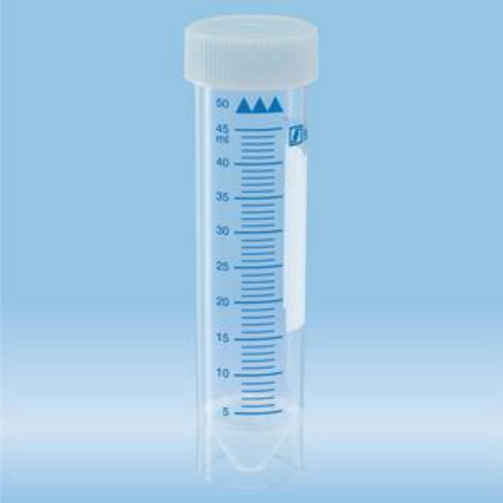 Productinformatie "Centrifugebuis 50 ml, PP sta-rand, LxØ 115x28 mm, transparante HDPE schroefdop, steriel"