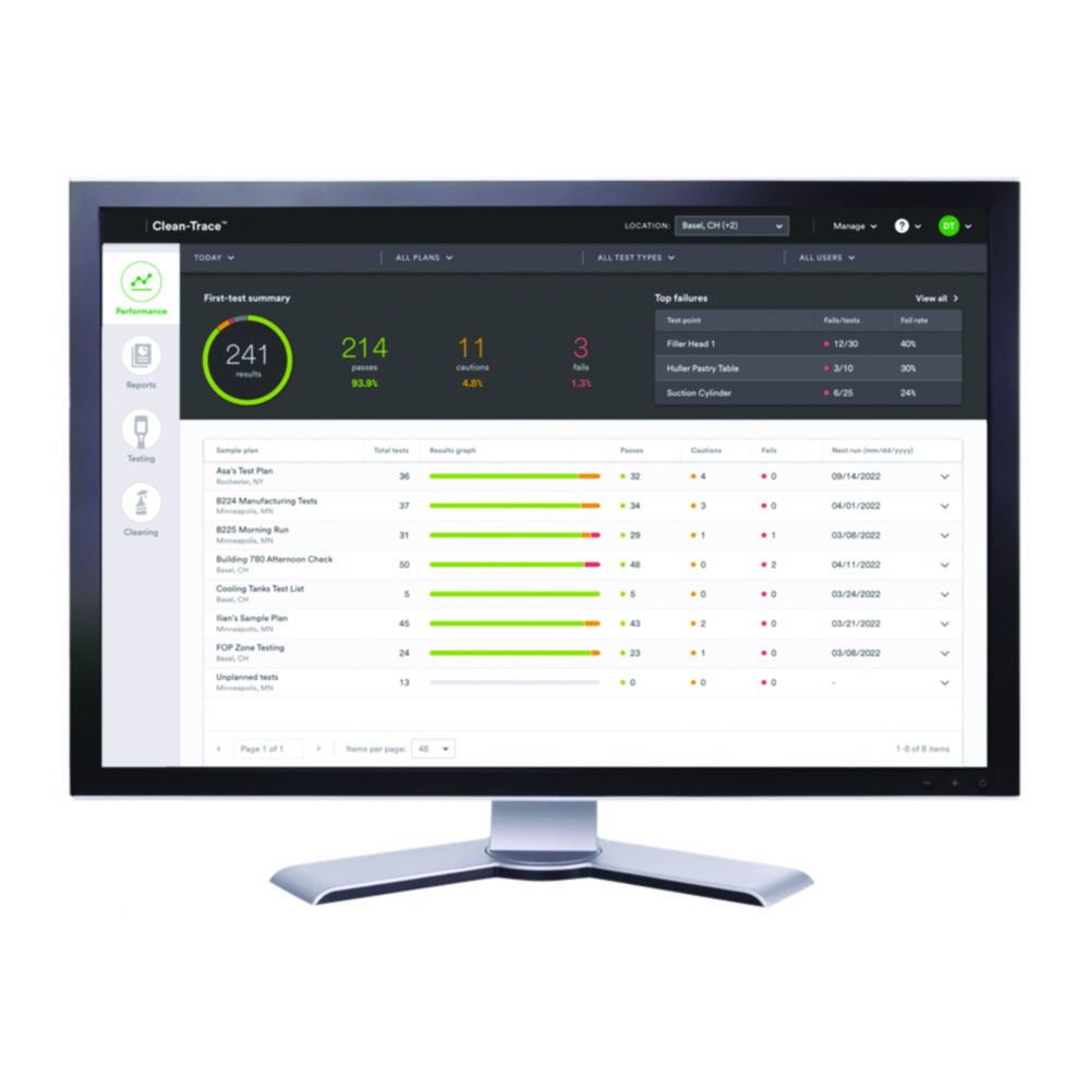 - Het systeem omvat de Clean-Trace® Luminometer en Clean-Trace® Hygiene Monitoring and Management Software waarmee u de testresultaten in de loop van de tijd kunt volgen